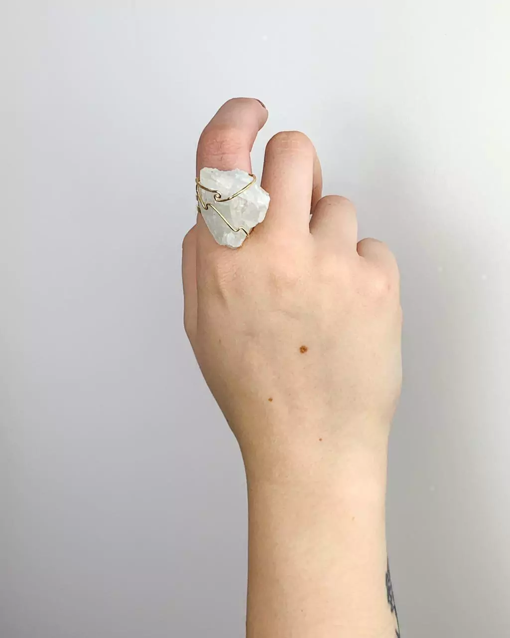 Anel Drusa de Cristal de Quartzo Ajustável Banho Ouro: Pedra Cristal é conhecida como pedra da Paz.
