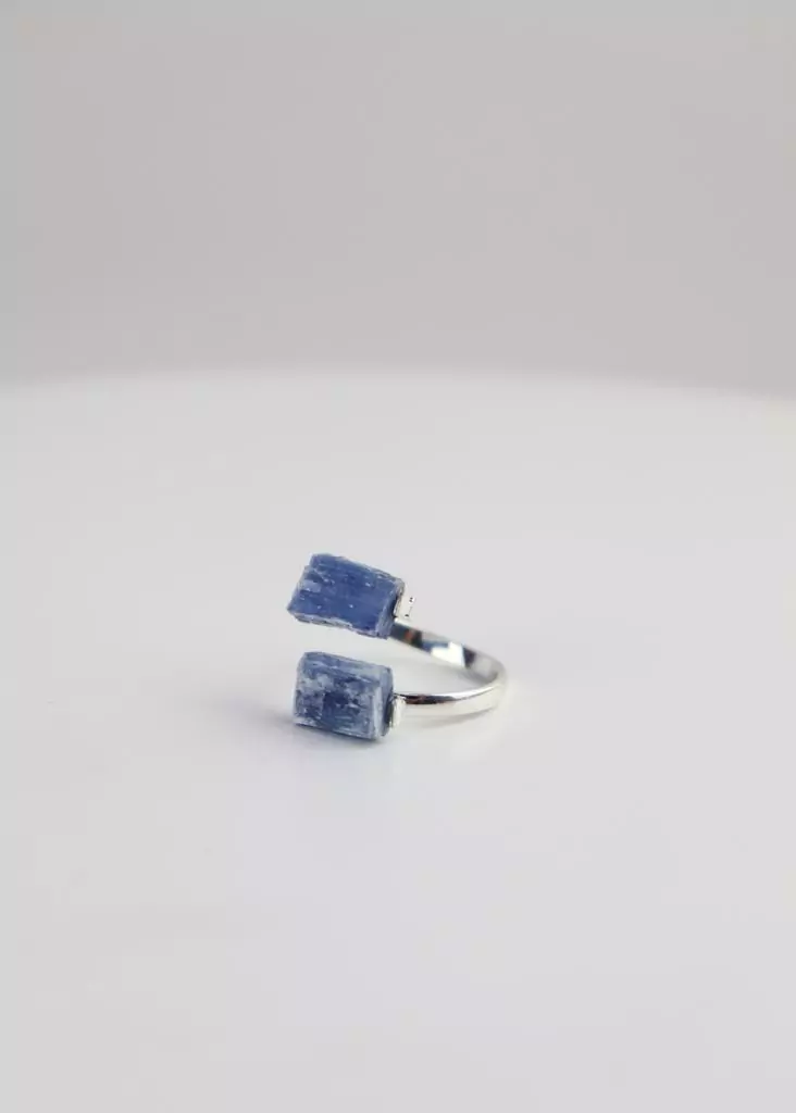 Anel Duo Cianita Azul Ajustável Banho Prata: Pedra de proteção do Arcanjo Miguel.