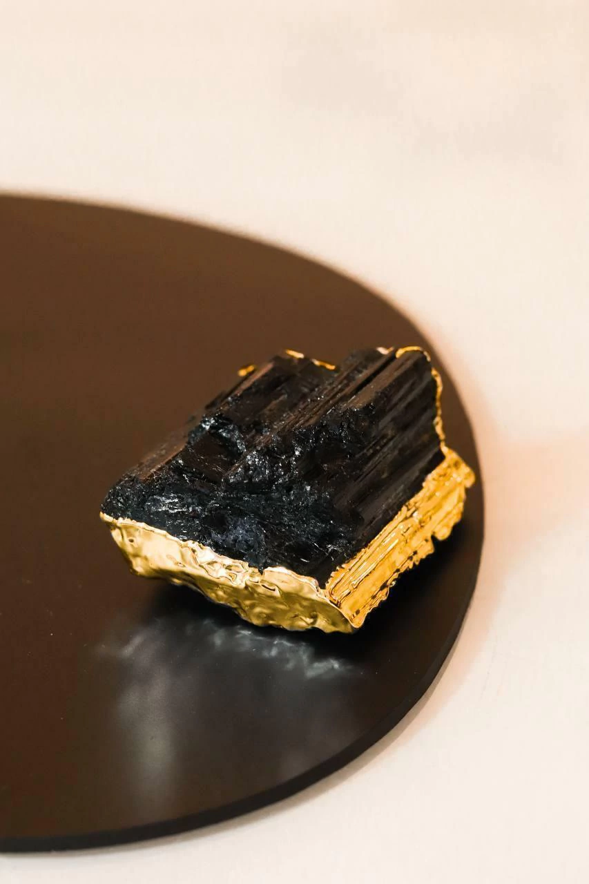 Bandeja Turmalina Preta Banho Ouro: Pedra da proteção.