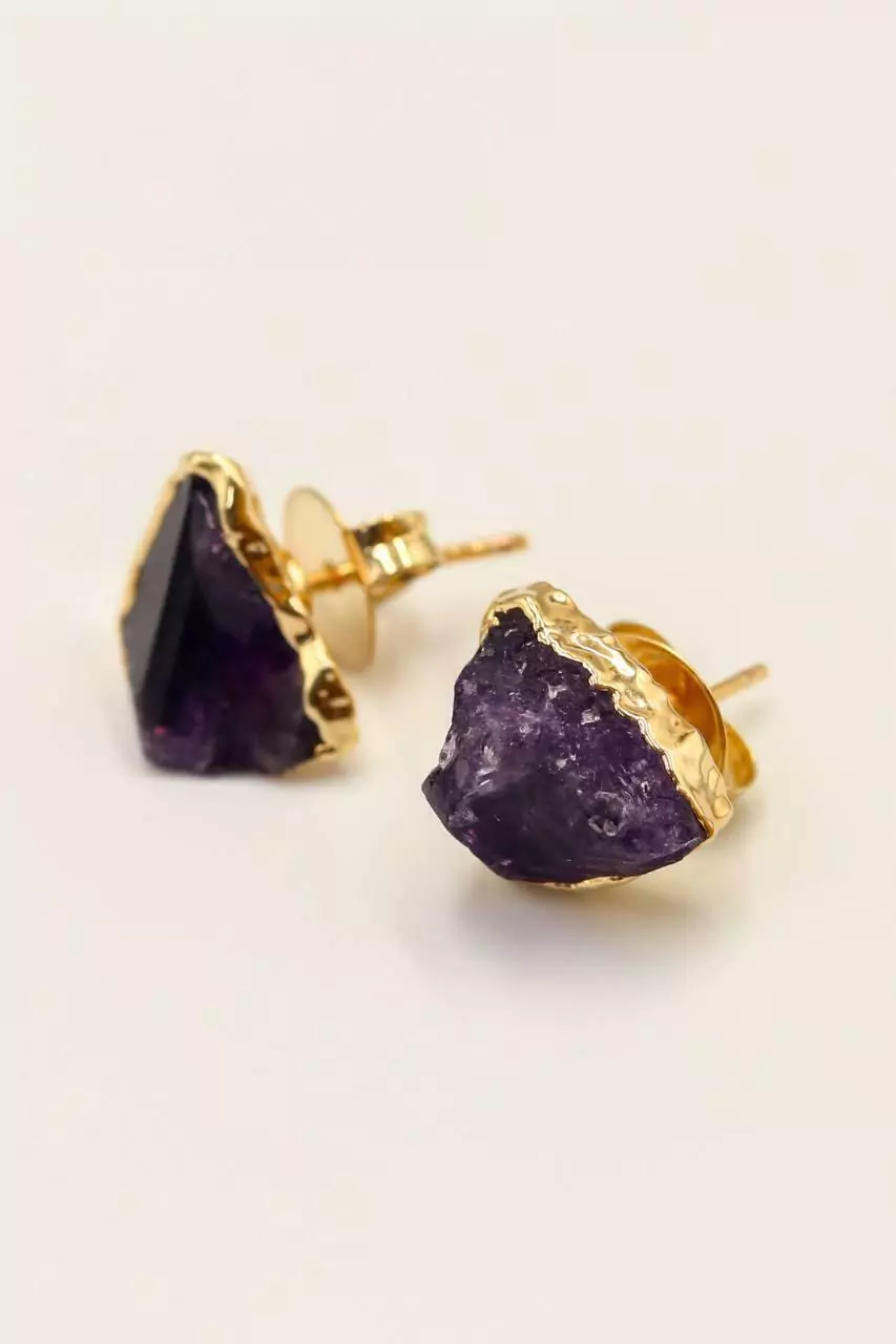Brinco Ametista bruta banho ouro: pedra Ametista é conhecida como pedra da transformação.