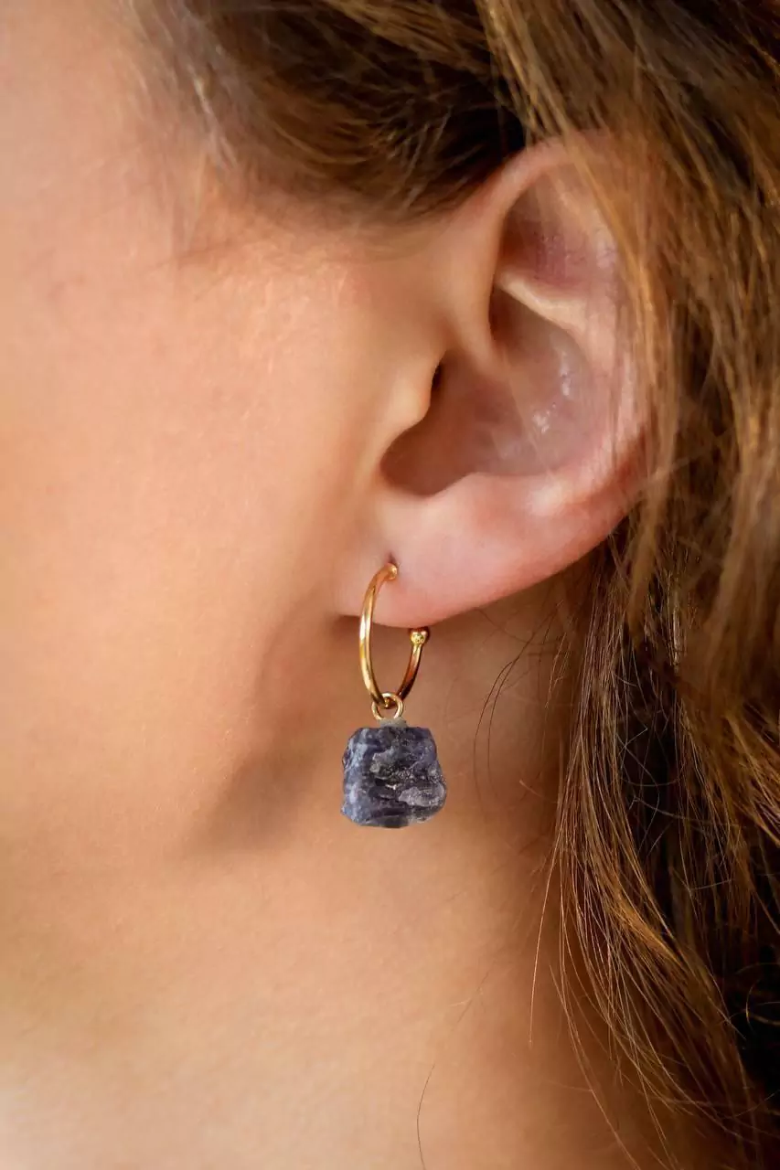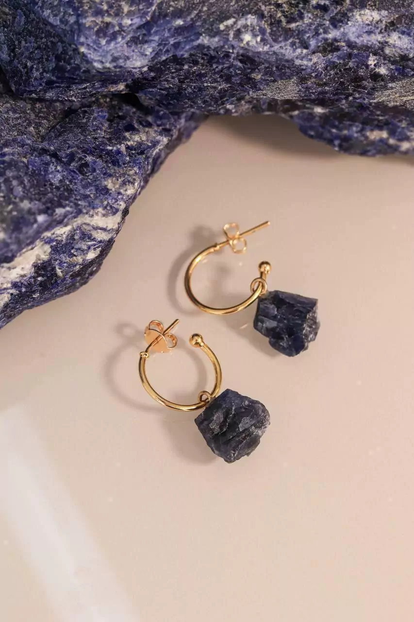 Este brinco possui um design em formato de argola e uma pedra bruta de sodalita, que traz um toque de luxo a essa peça, combinando com qualquer look. A pedra bruta de sodalita confere um charme natural para esse acessório. Ele complementa qualquer visual, adicionando um toque de personalidade marcante. Cada detalhe foi trabalhado para oferecer uma peça linda, sofisticada e exclusiva.