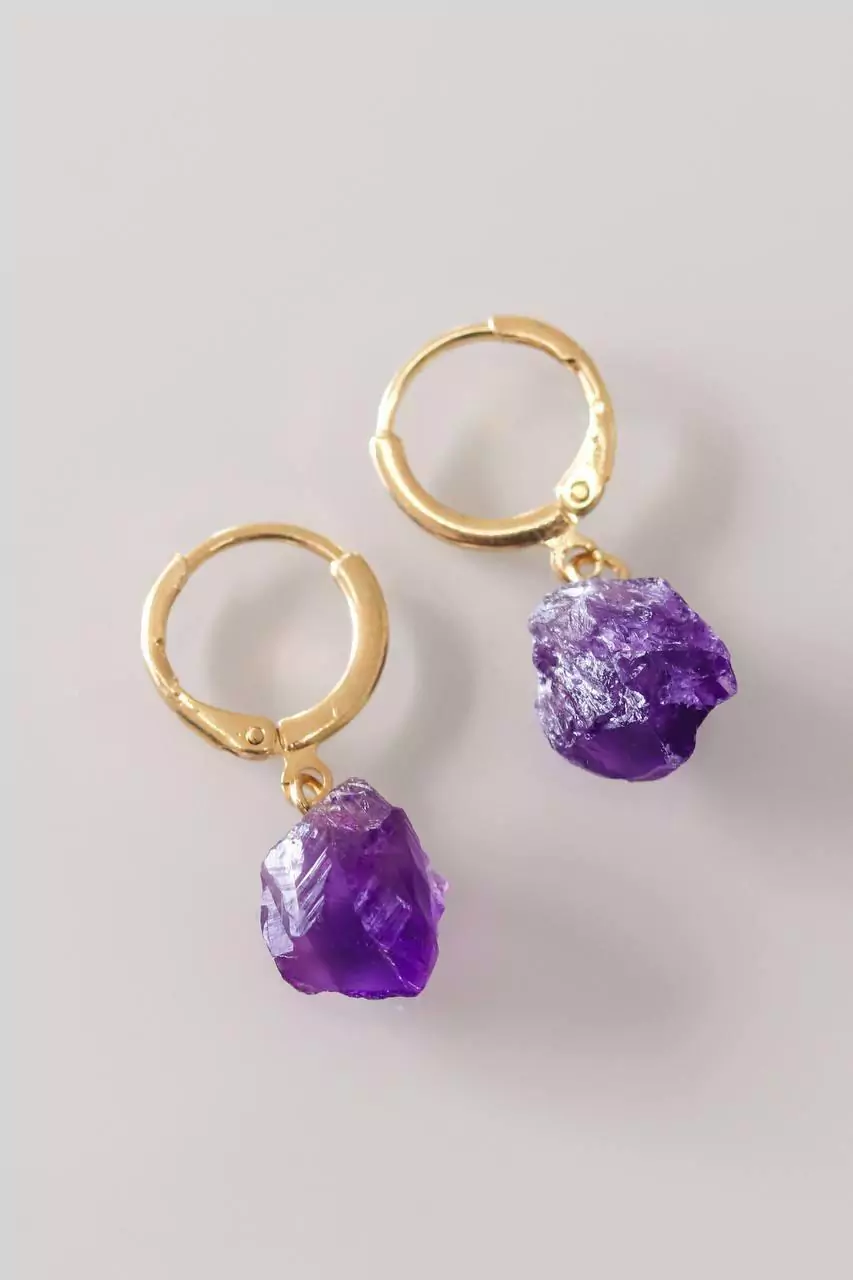 Brinco piercing argola Ametista bruta banho ouro:Pedra Ametista é conhecida como pedra da transformação.