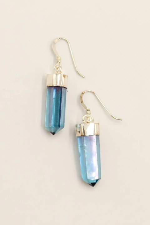Brinco Ponta Cristal Aqua Aura Prata 925: cristal Aqua Aura é excelente para ativar a energia de outras pedras e cristais, utilizados em tratamentos de cura física, emocional, intelectual e espiritual.