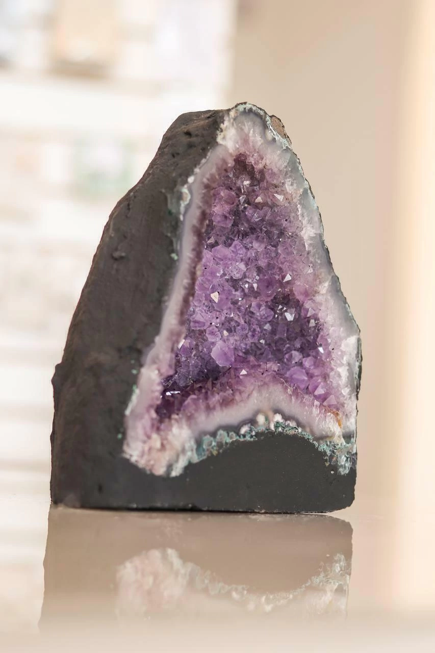 Transforme seu ambiente com a beleza mística e o poder energético da Capela de Ametista, uma verdadeira obra-prima da natureza. Esta peça única apresenta uma formação de cristais de ametista de altíssima qualidade, com tonalidade roxa intensa e brilho vítreo que atrai todos os olhares.Com bordas naturais polidas e uma cavidade profunda e rica em cristais bem formados, esta capela é ideal para uso em decoração de interiores sofisticados, altares espirituais, práticas de feng shui ou simplesmente como uma peça central de impacto.