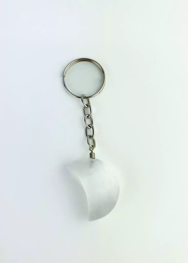 Chaveiro Lua Selenita Branca Banho Prata: pedra de limpeza.