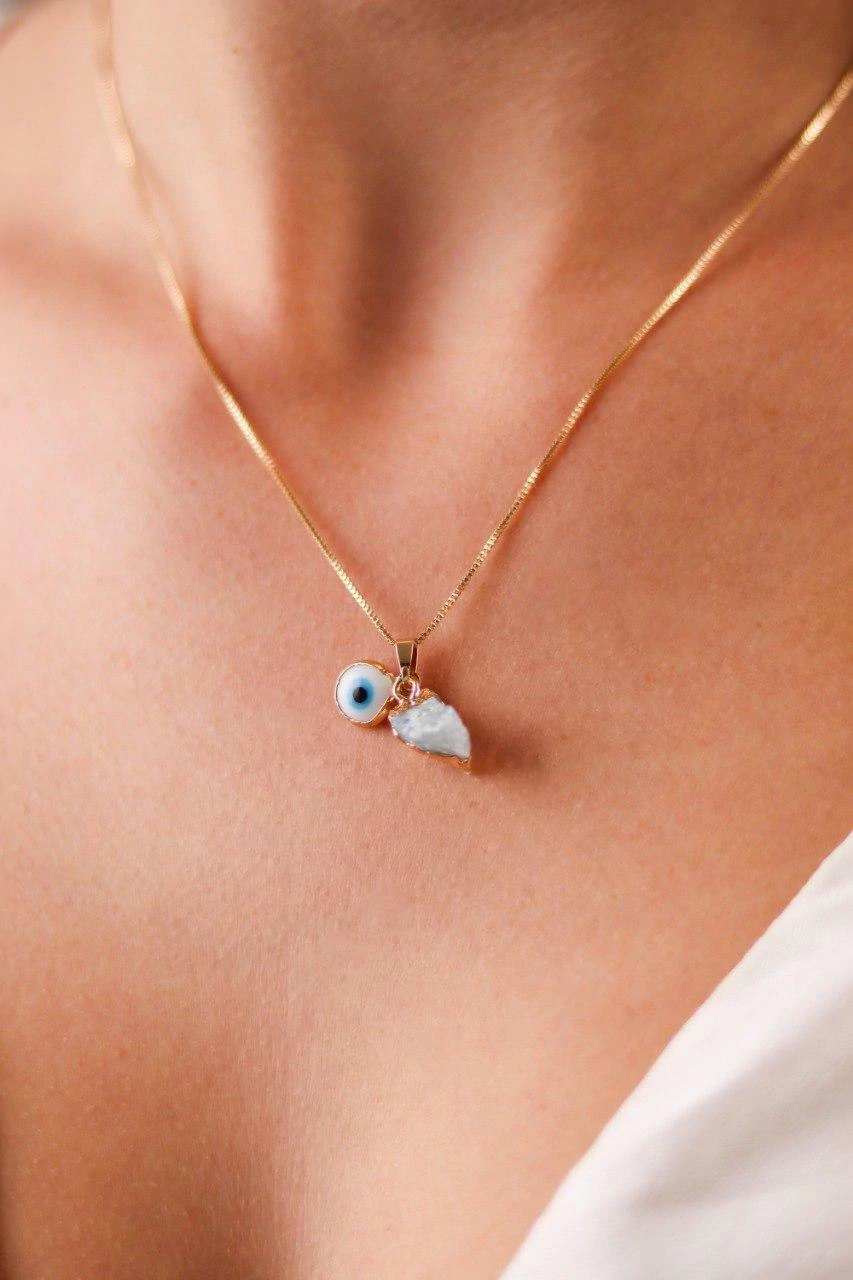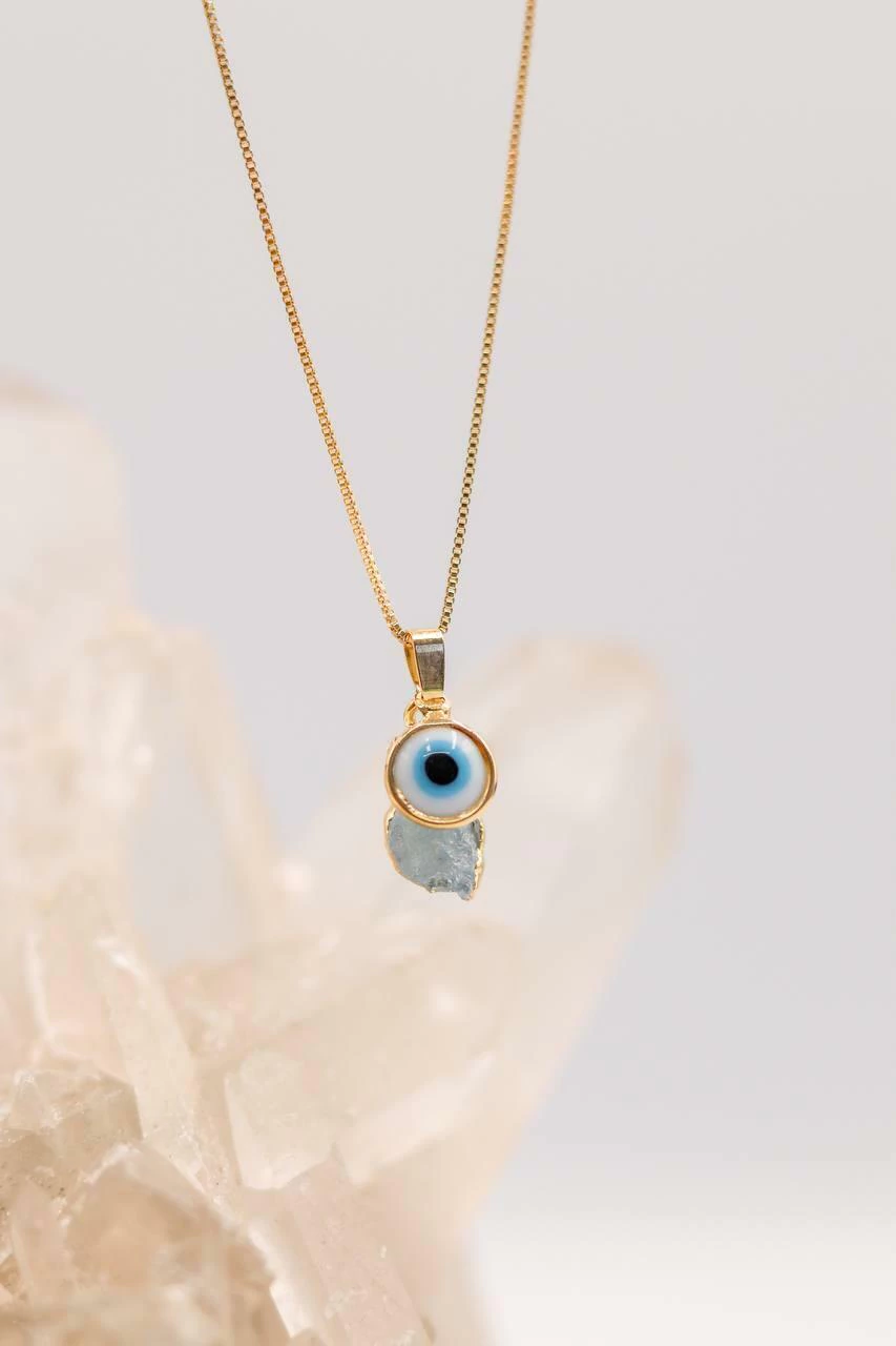 Delicado, elegante e cheio de significado, o Colar Água Marinha com Olho Grego Banho Ouro é o acessório perfeito para quem busca proteção com estilo. A pedra natural água marinha, conhecida por transmitir calma e equilíbrio emocional, se une ao olho grego, símbolo de proteção contra energias negativas e mau-olhado.