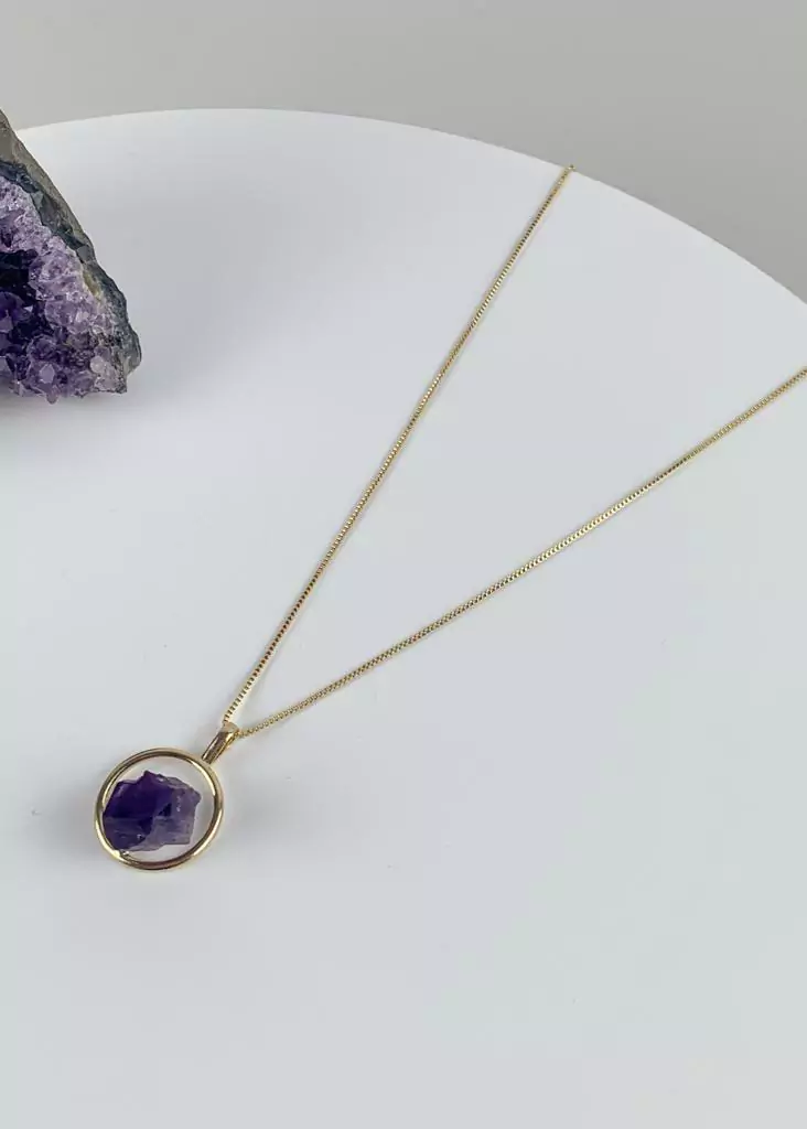 Colar Ponta Ametista Bruta Argola Banho Ouro: Pedra Ametista é conhecida como pedra da transformação.