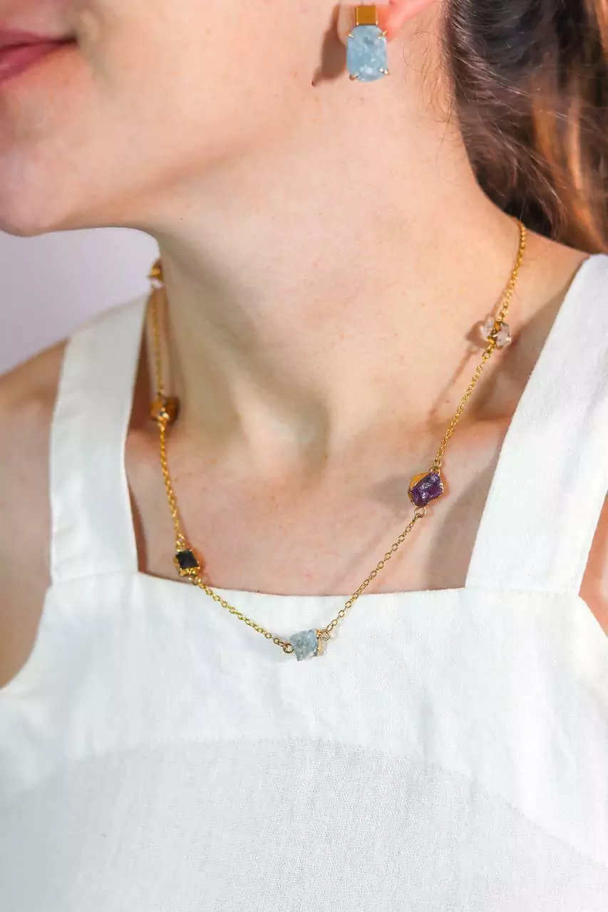 Colar Pedras Naturais Essencia Colors Banho Ouro - Com banho de ouro e pedras naturais cuidadosamente selecionadas, esta peça única exala sofisticação e leveza, ideal para quem busca um acessório que traduza sua essência em cores. Perfeita para complementar qualquer look com um toque de exclusividade e delicadeza.