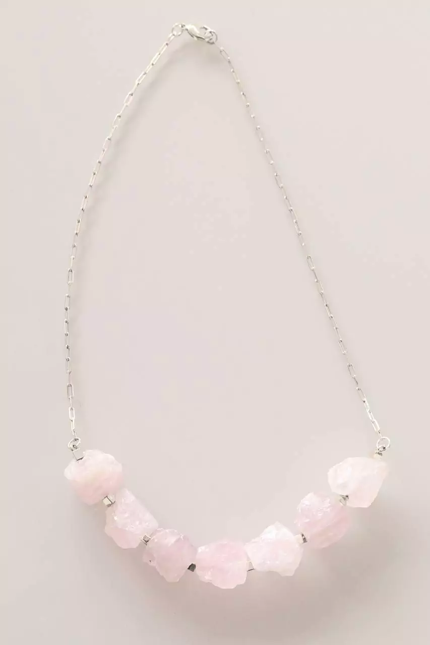 Este colar é a combinação do design moderno e sofisticação. O seu banho de prata confere um brilho especial à peça, adiciona um toque de glamour ao seu visual. A pedra bruta de quartzo rosa traz um aspecto rústico e autêntico. A versatilidade dessa peça permite que seja usada de várias formas, combinando com diferentes estilos e ocasiões.