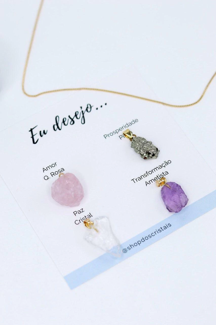 Colar Quatro Pingentes Manifesto EU DESEJO Banho Ouro