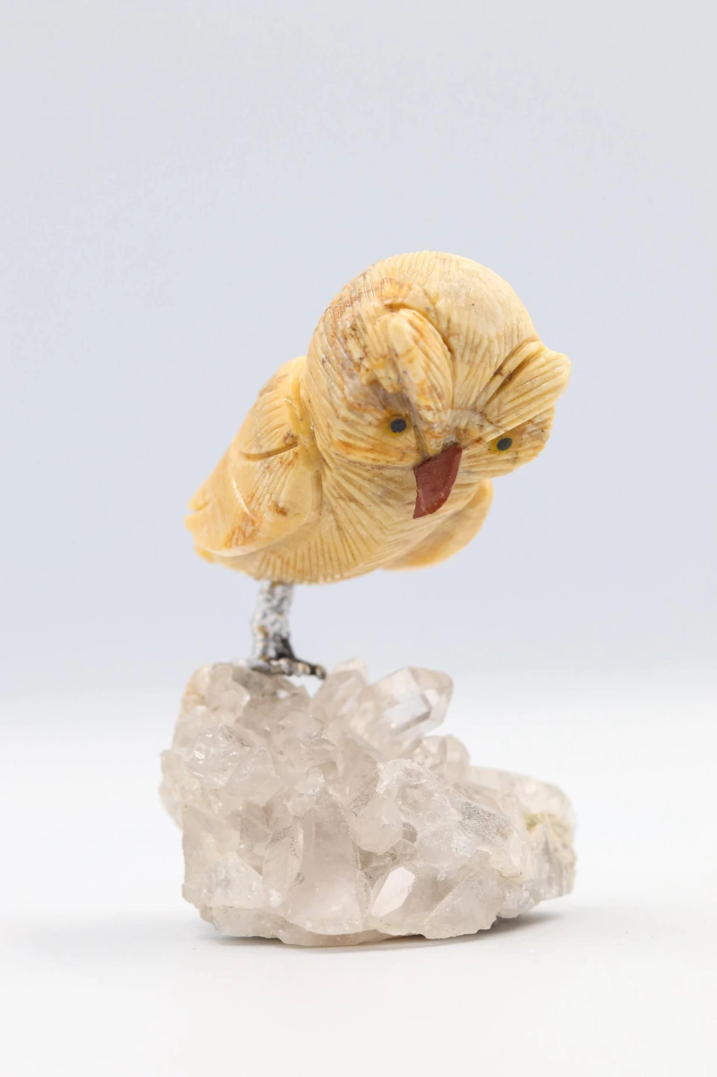 Incorpore elegância, misticismo e energia natural ao seu espaço com a Coruja esculpida em Dolomita Amarela, repousando sobre uma deslumbrante base de Drusa de Cristal. Uma peça única, que une simbolismo, beleza artesanal e o poder das pedras naturais.