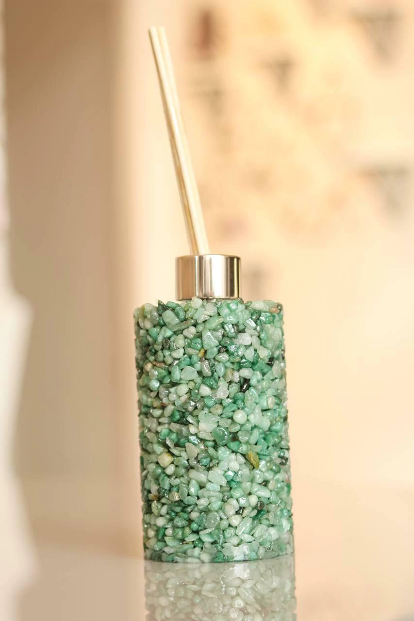 Difusor Quartzo Verde Cascalho Banho Ouro.