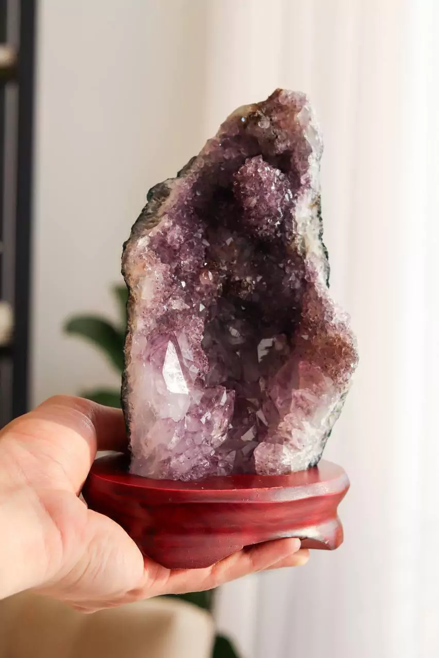 Transforme a energia do seu ambiente com a beleza natural da Drusa de Ametista na Base de Madeira Preta. Esta peça única combina a elegância rústica da madeira com a majestade dos cristais de ametista, conhecidos por suas propriedades de transformação e equilíbrio espiritual.