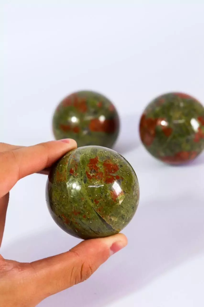 Imagine a Esfera de Unaquita como destaque em sua sala de estar ou quarto, adicionando um toque luxuoso à decoração. Também pode ser usada como objeto inspirador em escritórios ou até mesmo como presente especial para alguém querido. Cada esfera foi cuidadosamente selecionada e polida à mão, garantindo um produto duradouro com acabamento impecável.