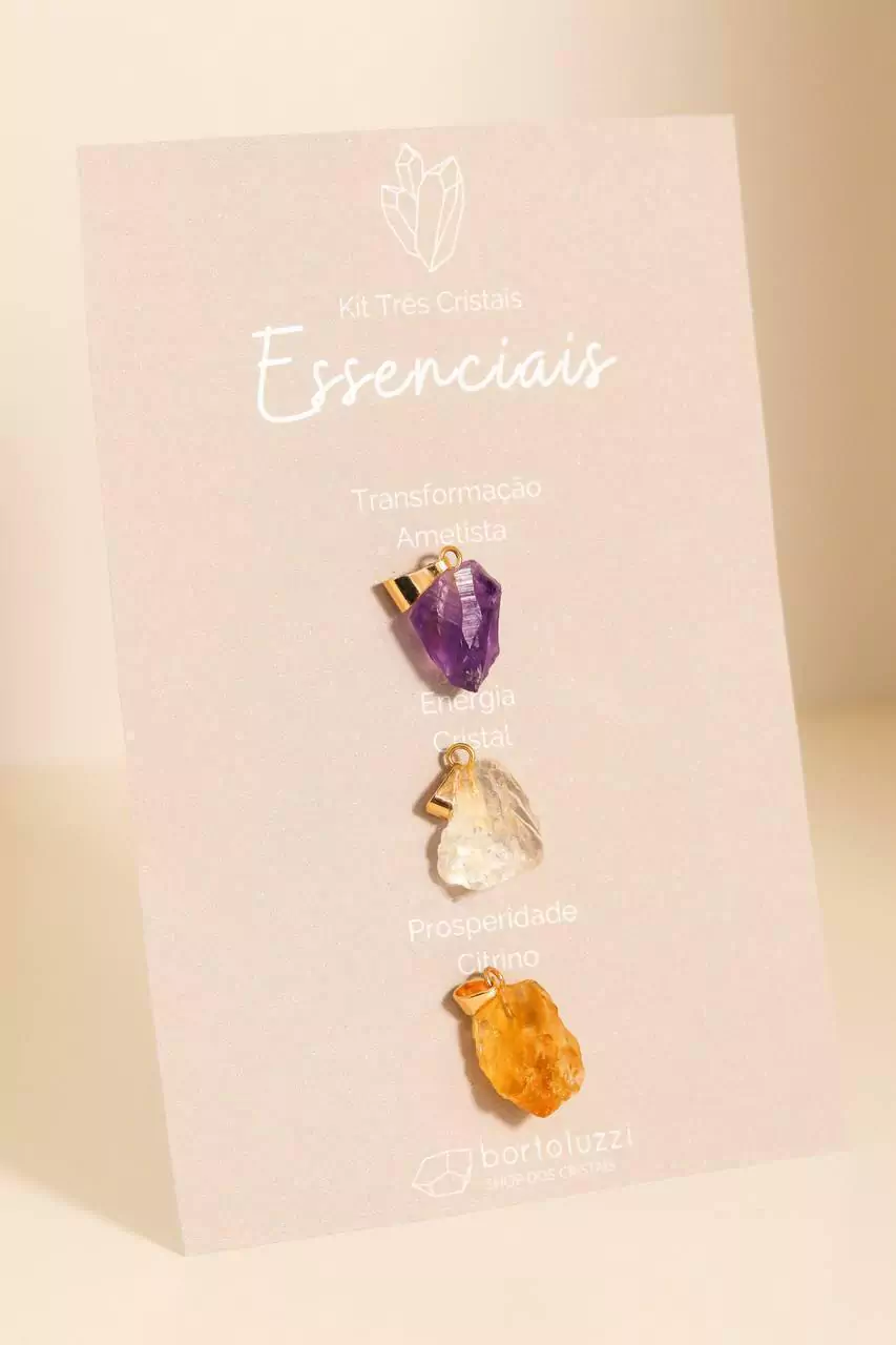 Kit Pingentes Três Cristais Poderosos: Composto por três pingentes: Ametista: Pedra da Transformação Cristal: Pedra da Paz Citrino: Pedra da Fartura