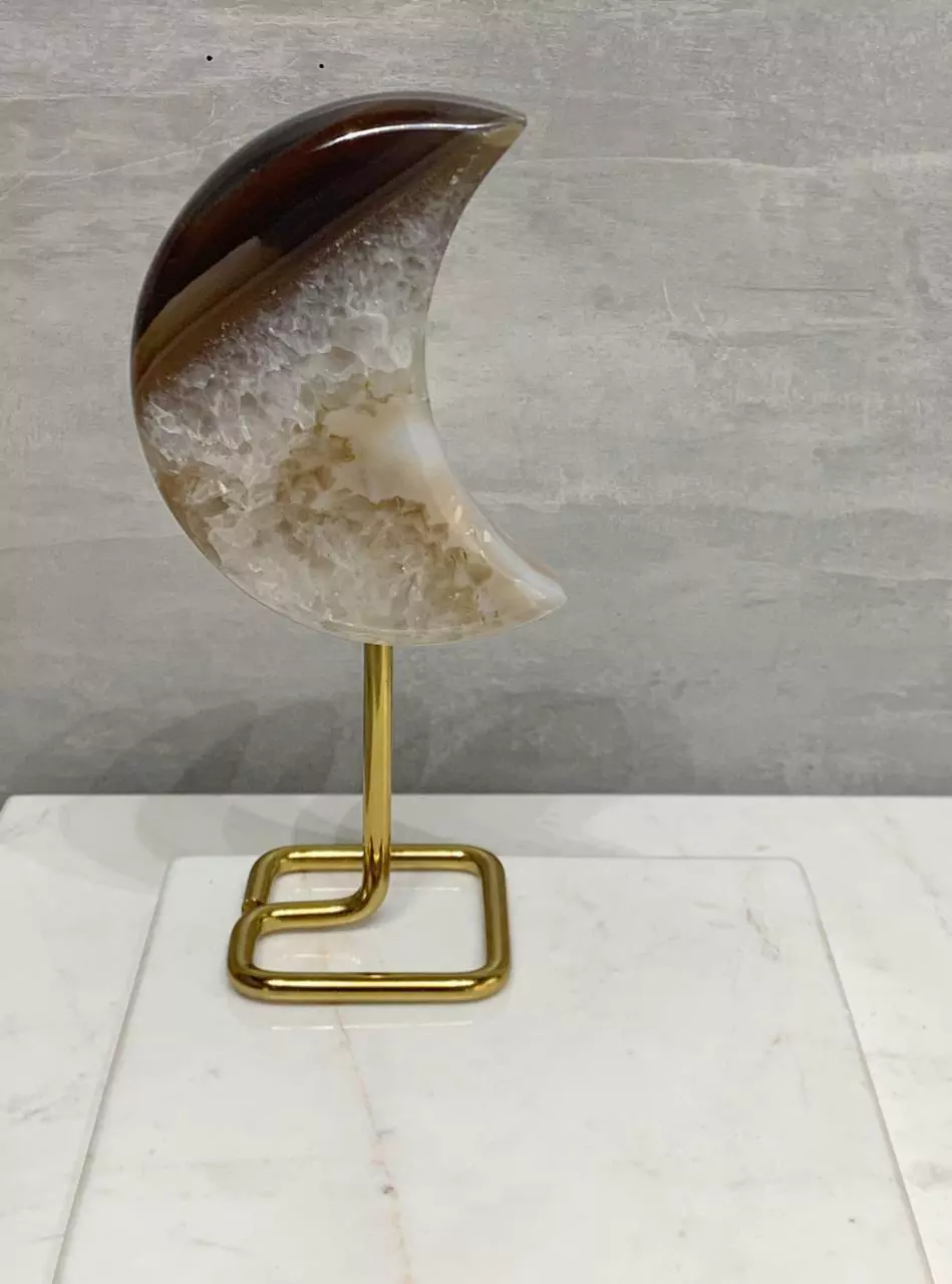 Lua Ágata natural com base metal dourada : Pedra da Energia.