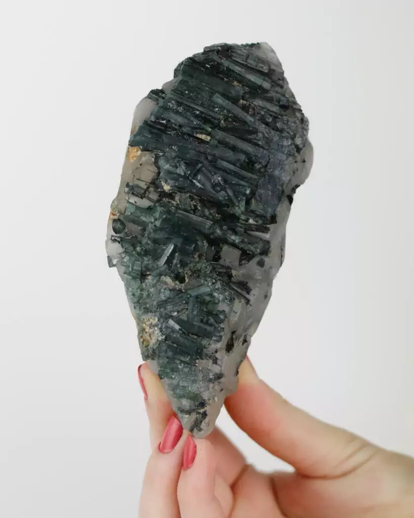 Pedra Turmalina Verde no Quartzo Formação Natural: Pedra que ameniza a dor emocional e mágoas do passado. .