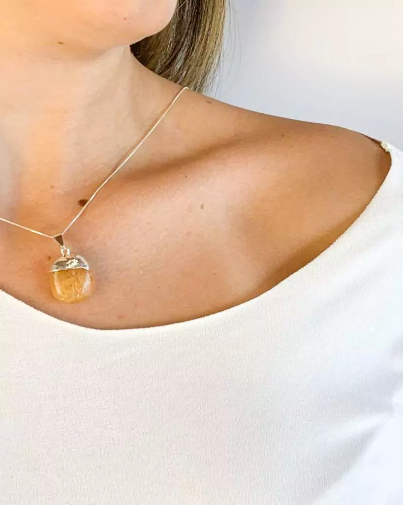 Pingente Citrino rolado com eletroplate banho prata : Pedra Citrino é conhecida como pedra da Prosperidade.
