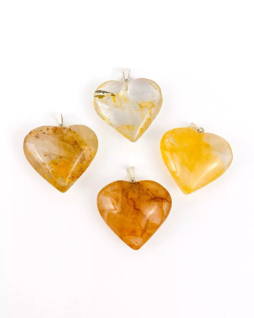 Pingente Coração Quartzo Agente Cura Ouro com pino banhado Prata