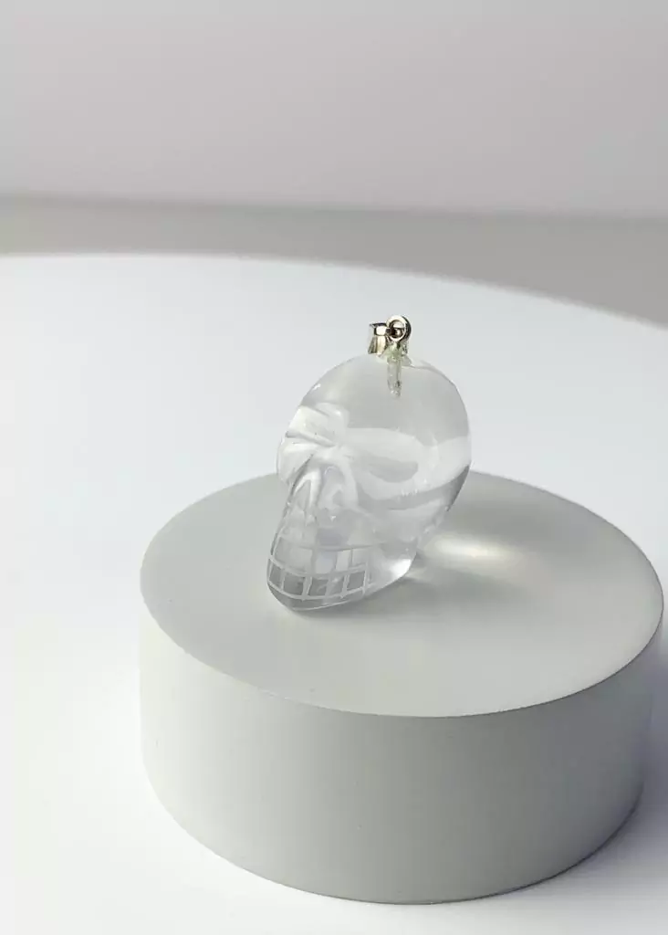 Pingente Cristal de Quartzo Crânio Banho Prata: Pedra Cristal é conhecida como pedra da Paz.