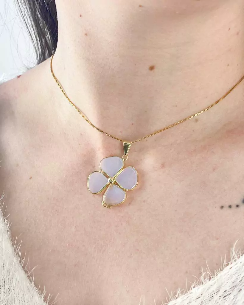 Pingente Trevo de Opalina :Pedra Opalina é conhecida como a pedra para afastar energias negativas.